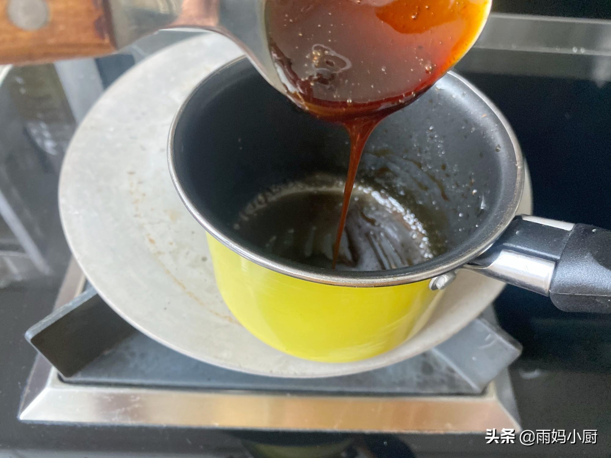 8、最后煮好的黑糖浆浓稠,提起勺子可以看到厚厚的糖浆。