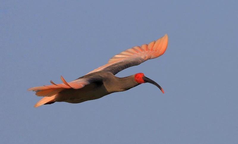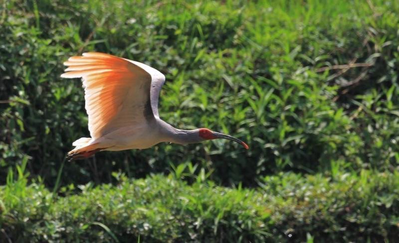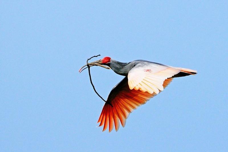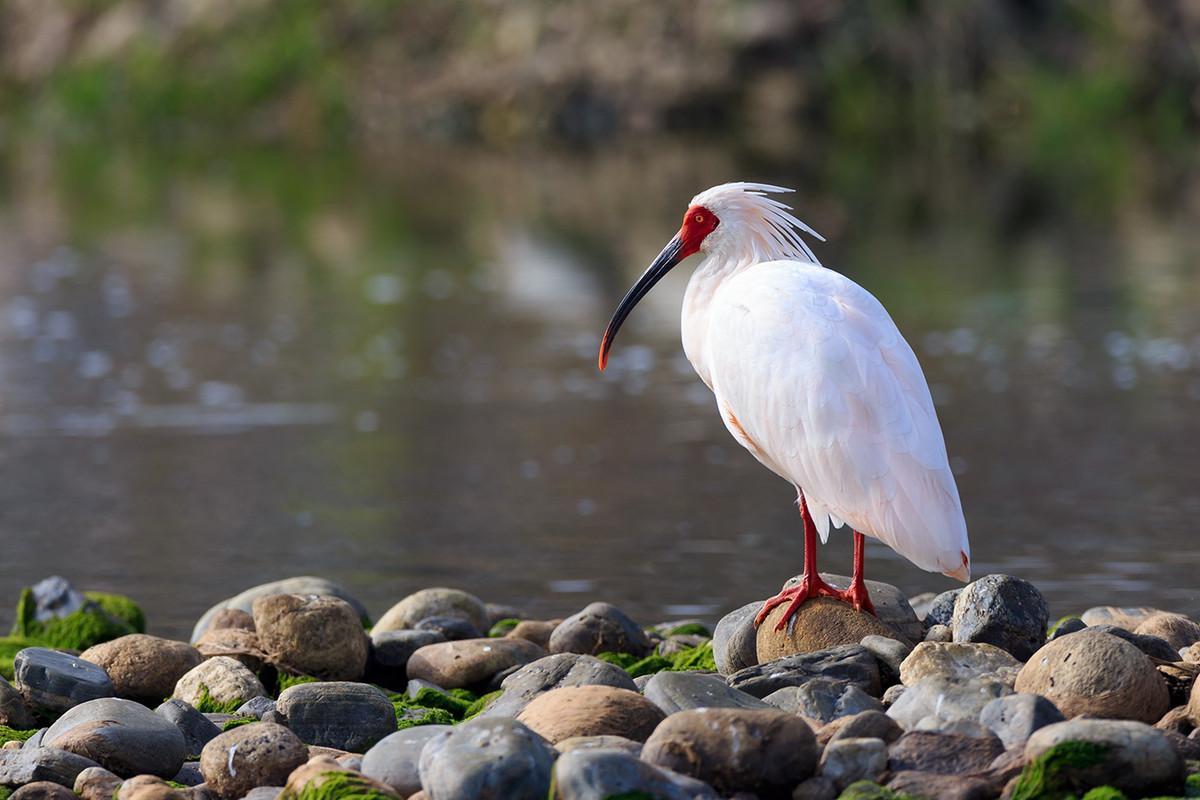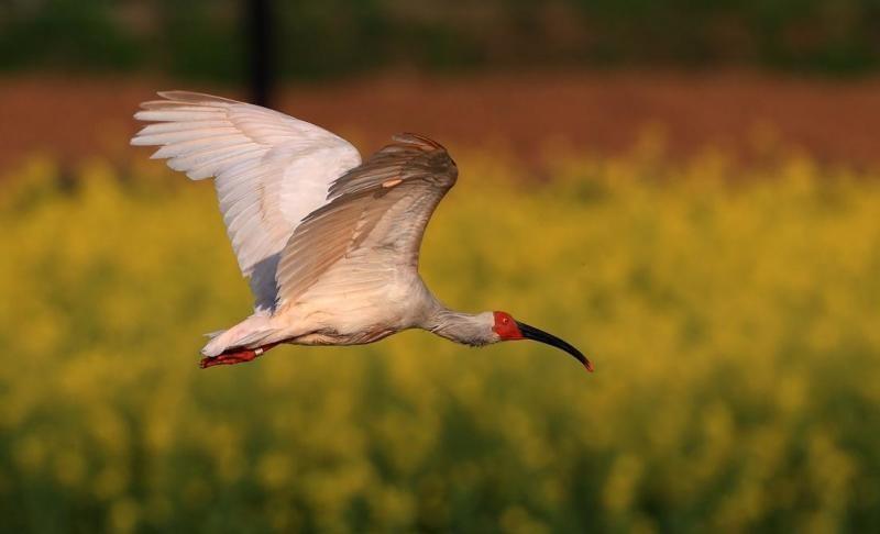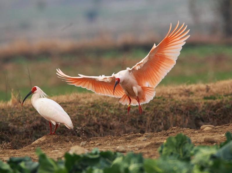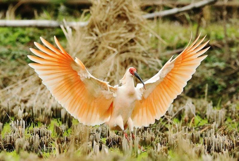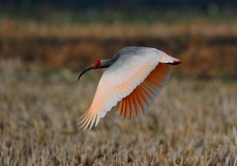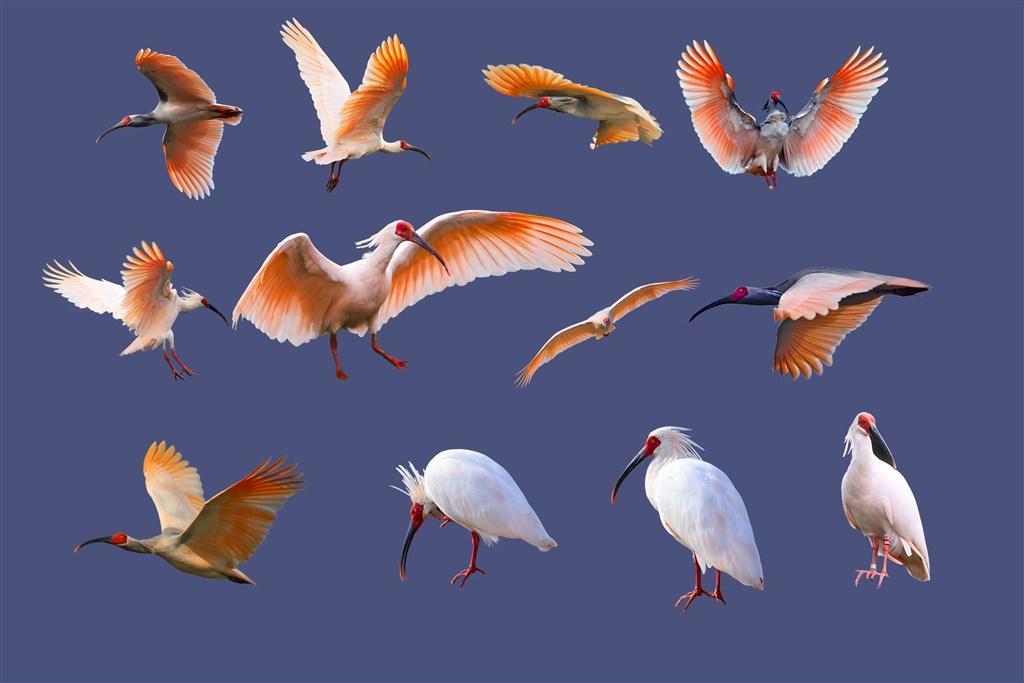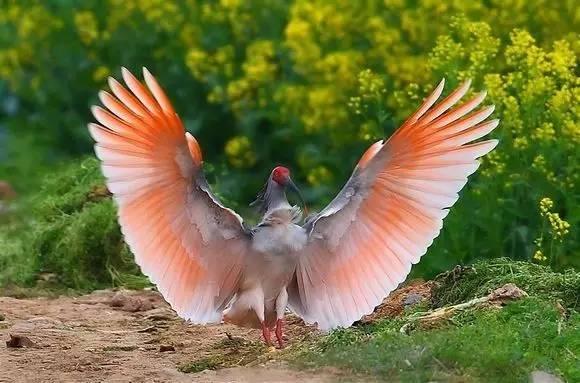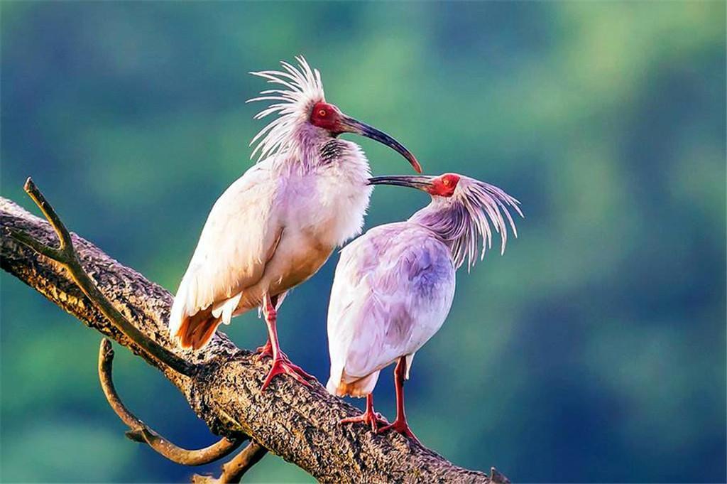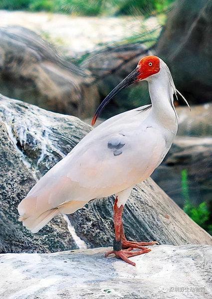 ①鹮科朱鹮属鸟类,古称:朱鹭、红朱鹭,国家一级重点保护动物;
