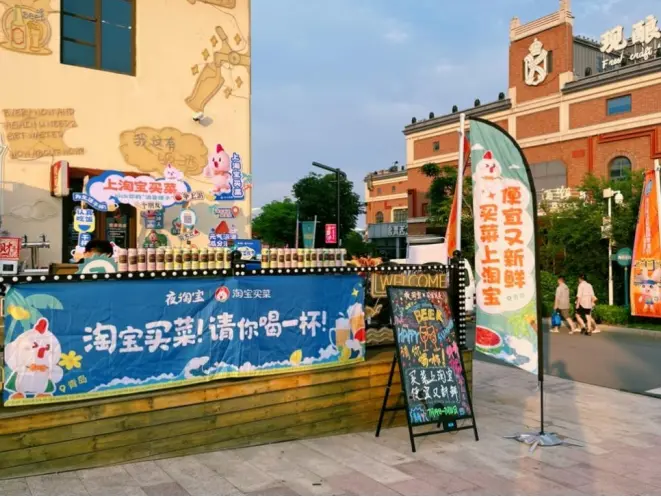 在线下,淘宝买菜联合夜淘宝还在青岛金沙滩啤酒节现场设置了临时自提点。