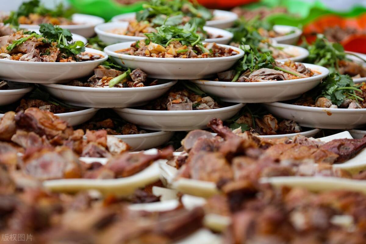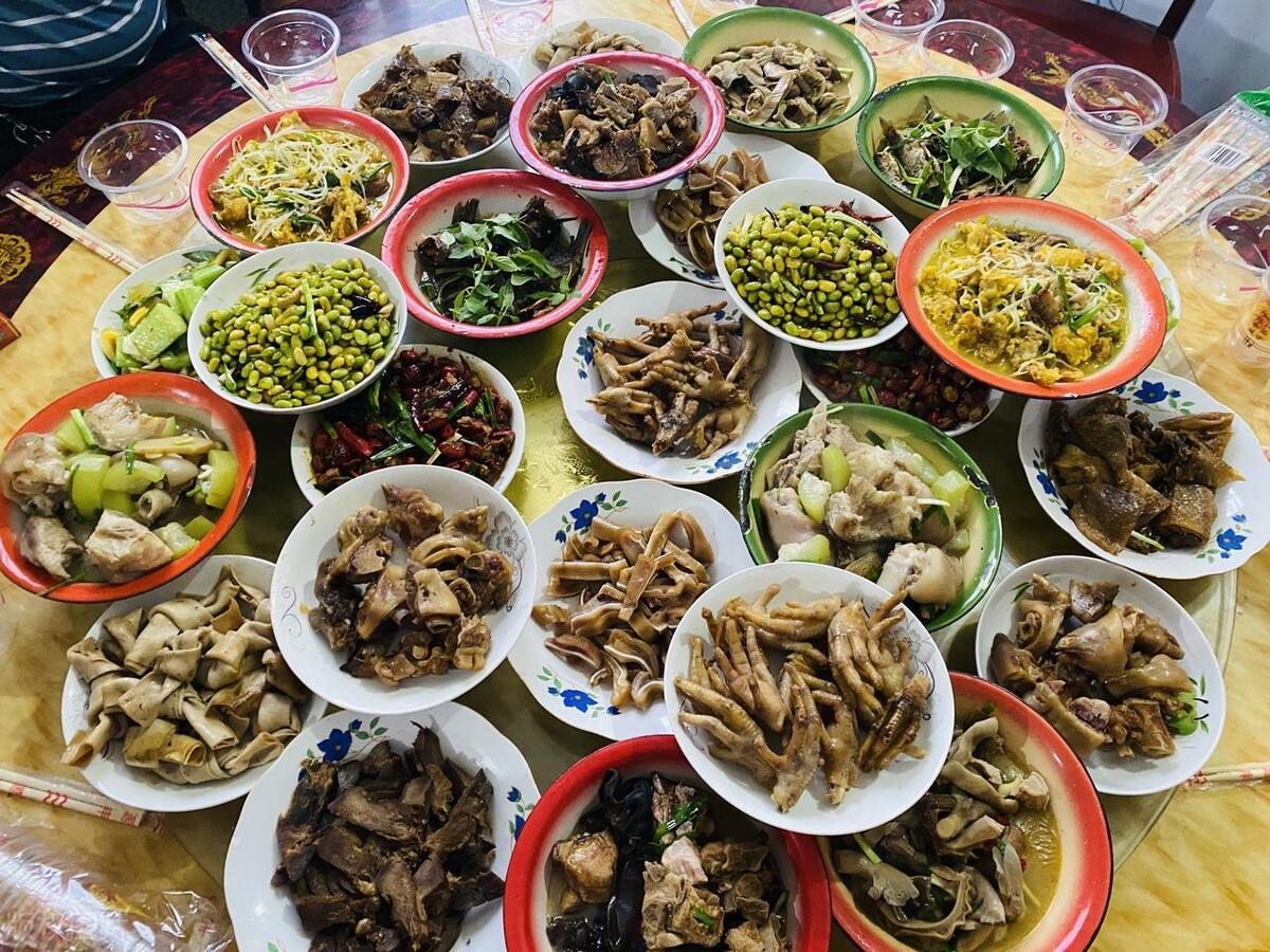 一圈吃下来,我发现那边农村的家宴都有个特点:在餐桌上,喜欢叠菜,就是菜盆子不停的堆上去。