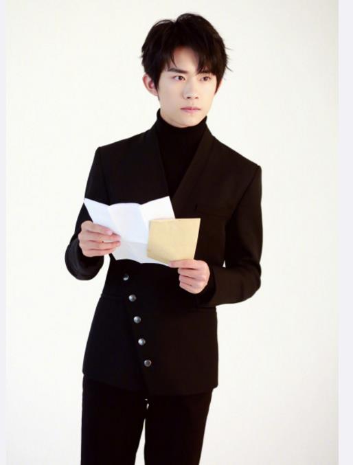 易烊千玺穿着高领西装,介乎男孩和男人的成熟,有别于平常的运动服风,十分有味道。易烊千玺非常认真的读着信封,看着有带着深厚的感情,毕竟易烊千玺也是能够体会到这种信的意义。