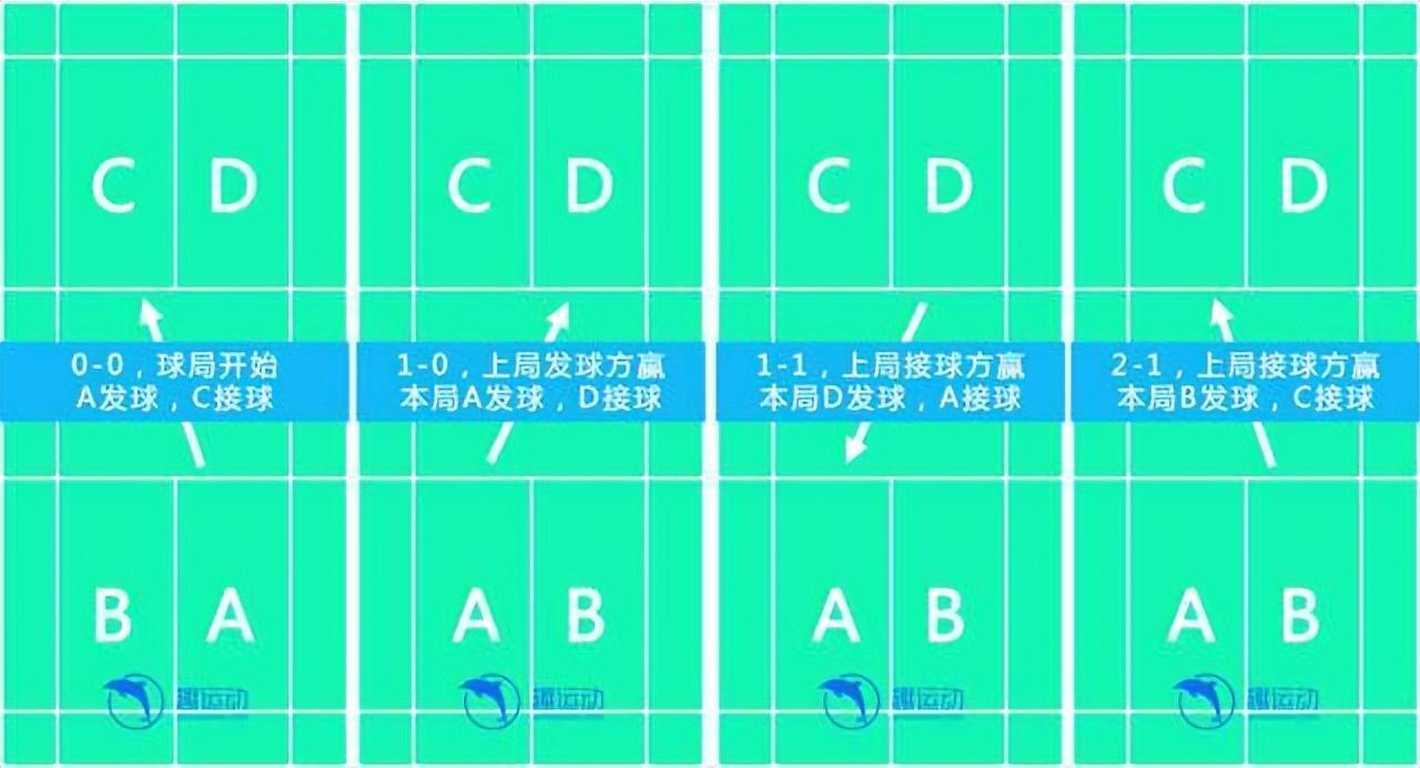 相比单打而言,双打的规则复杂一些,不过也不难,可以用3句话总结: