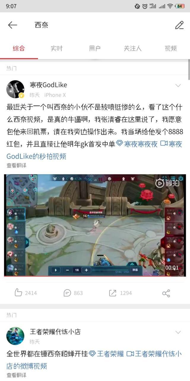 西奈在赛季初就被职业选手质疑过开挂,而且不是一个,猫神和伪装都有怀疑过西奈开挂,一个能将貂蝉玩的出神入化的玩家很常见,但是在貂蝉开大的时候连跳14下,那可就不是出神入化那么简单了,这种只有在理论上能达成的操作,在西奈的手上轻松能达成,开大期间2技能0.3秒的冷却时间,看得玩家目瞪口呆。当然猫神和伪装举报之后,天美的管理员也接手了,只是核对数据之后,并无发现异常,毕竟这些操作在理论上却是能达成!