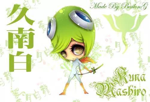 首先来介绍久南白,一位留着绿色短发的萌妹,时常穿着白色紧身服,围着橙色头巾,手上和脚上的衣服颜色为橙色,头上带着白色目镜。背上背着斩魄刀。