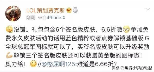 从目前的情况下来看,6款带签名的皮肤售价应该是“666”一来有称赞的意思,也是非常的吉利!但是有人发现了里面的玄机:666的礼包打6.6折之后的售价正好是“439.56”四舍五入之后正好是那个关于厂长的经典数字“4396”