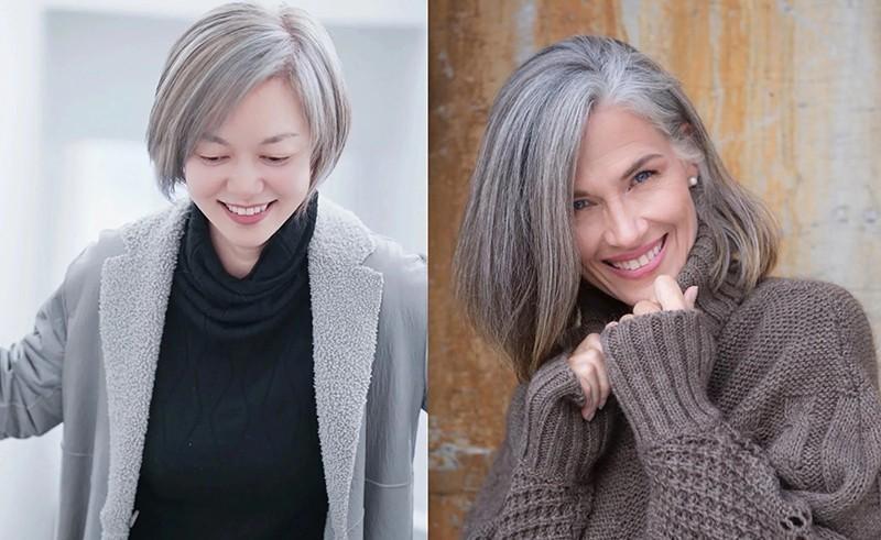 若是钟情于银丝白发,那么考虑一种自然“由短及长”的层次感,通过这种方式来增添蓬松度,结合上白发的样式更加自然得体。或者,你还可以选择“发尾内扣”的弧度,也许更适合塑造年轻而不失稳重的形象。