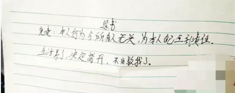 只有两句话,一句是免责,一句是不用救我了。在结束生命前,太多的经历、记忆和情感都没有提,只剩下这白纸上的两句话。
