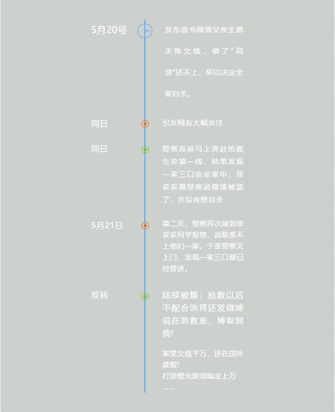 后来被警察救下,一家三口无虞,事情有了反转,梳理时间轴如下,其他具体细节大家可以再行了解。