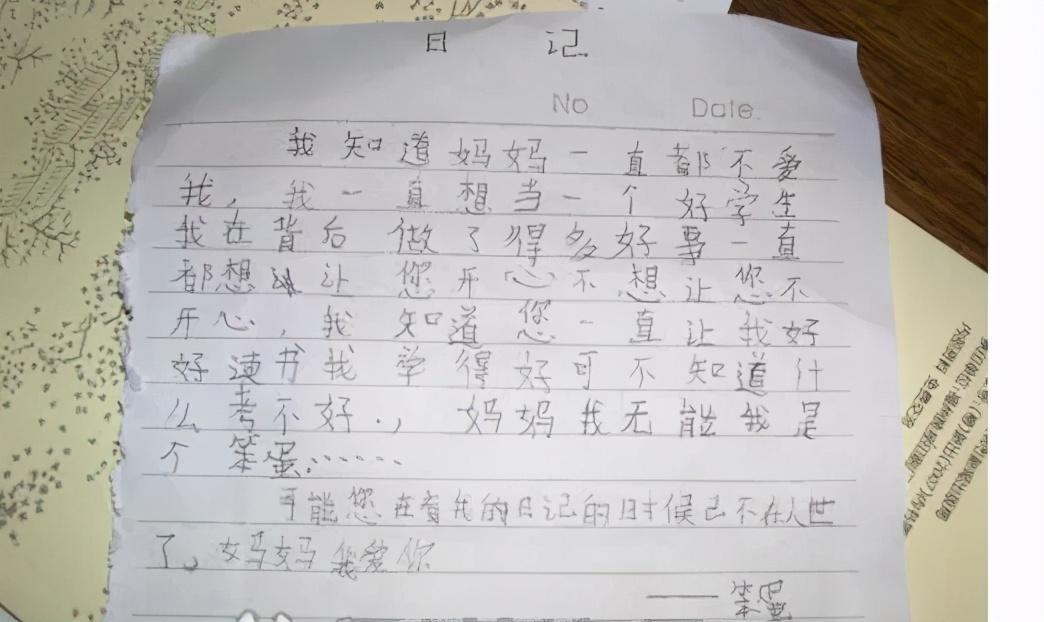 我知道妈妈一直都不爱我,我一直想当一个好学生,我在背后做了好多好事一直想让您开心,不想让您不开心,我知道您一直让我好好读书,我学的好可是不知道(为)什么考不好,妈妈我不无能我是个笨蛋……