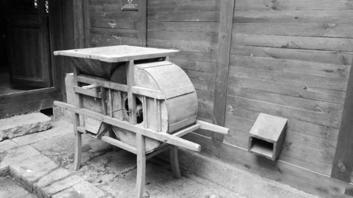 当时风车的作用对壮谷硬善分类很大的。它可以把脱壳的稻米,谷物等里的杂物进行分离的工具。风车摇的时候需掌握好速度,太轻硬善和壮谷一起漏下混合,摇得大重大快,把部份壮谷漏到硬善里去了,而硬善吹到扁子里去了。