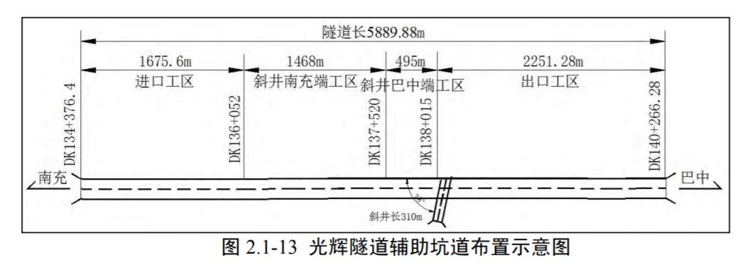 光辉隧道位于四川省巴中市恩阳区光辉镇。隧道穿行于低山丘陵区,地形起伏较大,海拔髙程400~570m,山体地表一般为薄层第四系土层覆盖,植被茂盛。隧道全长5904.556m;隧道最大埋深约198m。