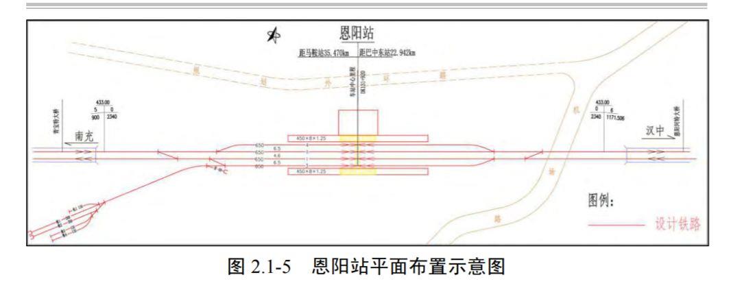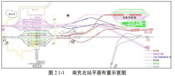 南充北站规模满足本工程近期客运需求,本项目维持既有南充北站规模不变,本线从既有车站北侧咽喉引入。