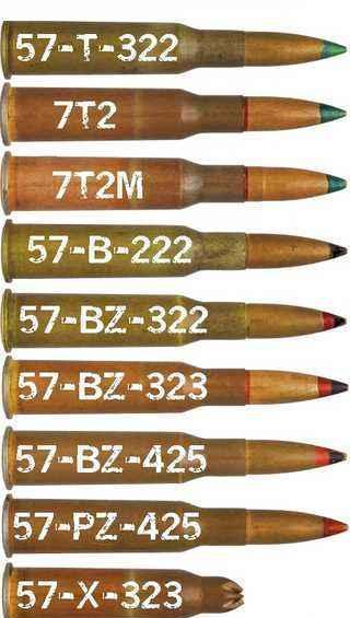 7.62×54mm R枪弹其实从帝俄时期就已经开始使用,现在通常只作为机枪弹使用,不过SVD所配用的却是同规格但专门开发的狙击弹,精度更高,威力更大,在1000m距离上仍有很强的杀伤力,另外还有专用的曳光穿甲燃烧弹。当然,SVD也可以发射普通的7.62×54mm R机枪弹。 事实上,SVD早期设计的缠距为320mm,后来才缩短到240mm,这样的改变使发射普通弹时精度很差,并使枪口初速从830m/S降低到810m/s。这样做主要是为了配合新开发的专用狙击弹、曳光穿甲燃烧弹所需要的最大自转速度,以提高发射这些专用弹药时的弹道性能,所以SVD发射7N1弹时初速仍为830m/s。7N1在1950年代与SVD并行研发。该子弹弹头为铜质金属被覆钢芯空尖弹头,并为了在弹道末段达到最大的打击效果于弹头底部安装有铅质knocker。