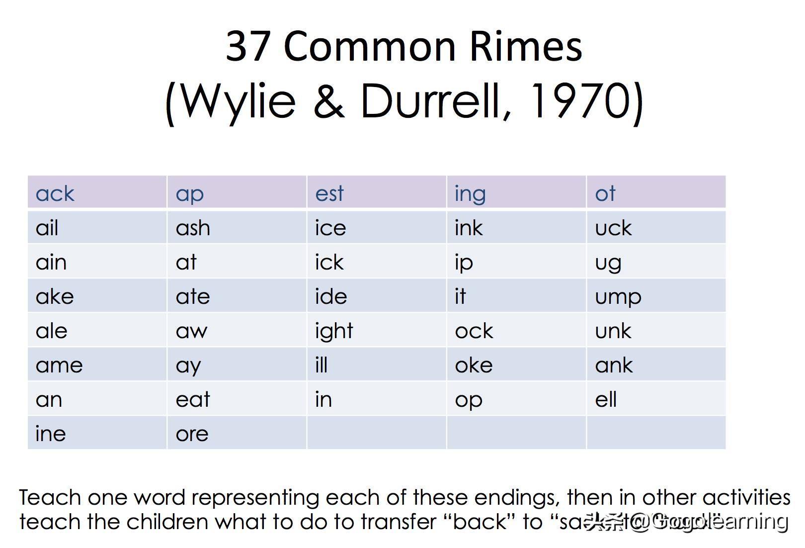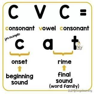CVC 单词主要有两部分组成,第一个C(辅音)被称作“onset”(声母),后面的VC(元音+辅音) 被称作“rime”(韵母),也就是我们所说的word family。