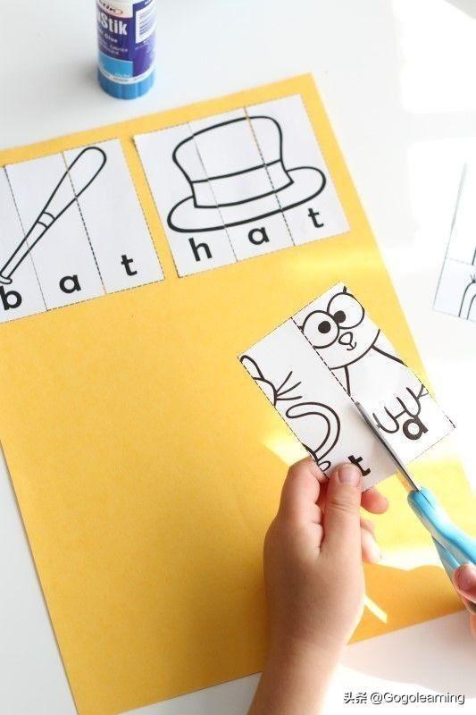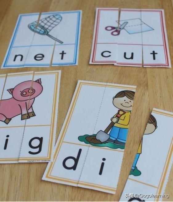 原本好好的CVC单词,给切成三份,就成了拼图。当然,还是要留一点儿线索,孩子们可以借助图片还复原这个单词。