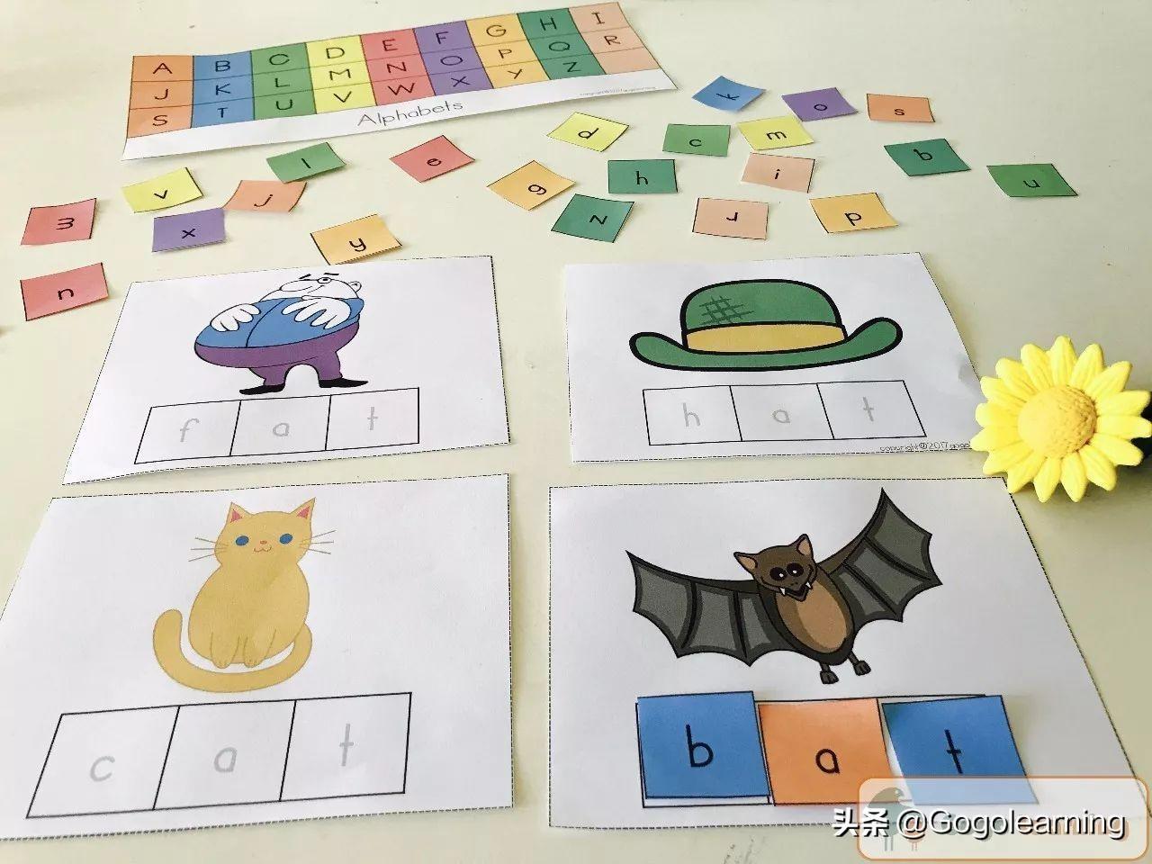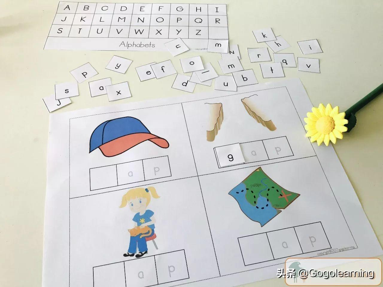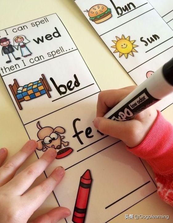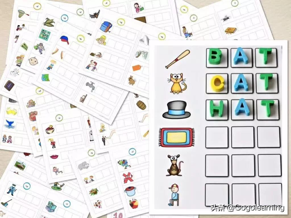 对于初学者或者年幼的孩子,美国有一个standard(教学标准):Distinguish letters from words 区分单词中的字母。给孩子一个单词,让他照着单词的样子去找出其中的字母,然后对照着图片读出这个CVC单词。