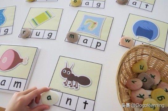 你还可以在声母的制作材料上下一些功夫。它的材料可以是鹅卵石,矿泉水瓶盖,甚至大的南瓜子也是可以的,孩子们会非常喜欢自己动手去写上字母。