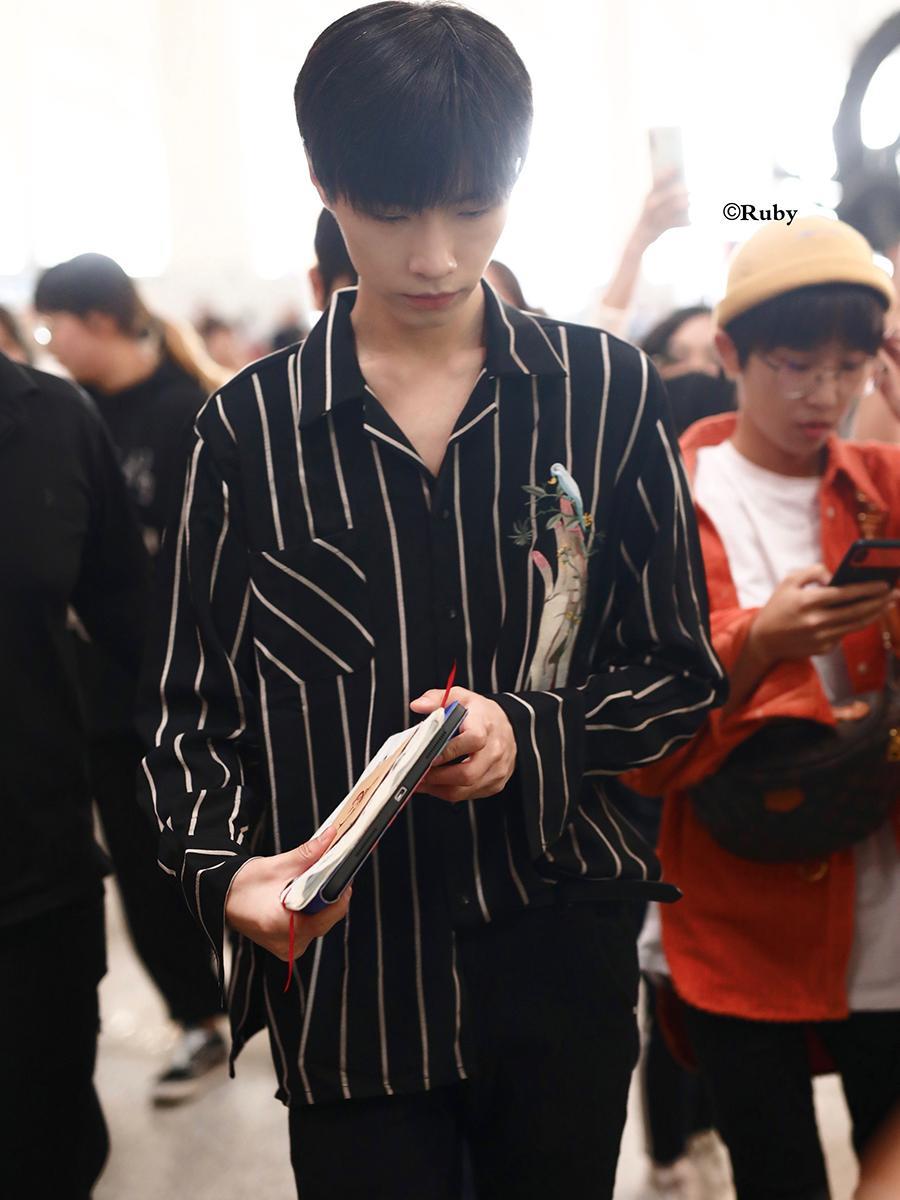 宋继扬虽然气质清新,但穿黑色也造型却格外好看。他偶尔耍一把小帅气,一袭ins风格纹印花的灰黑色衬衫点缀精美的金色吊牌项链,时尚前卫好吸睛呀。不过,他的妆容依旧比较清淡,难掩少年的干净气质。