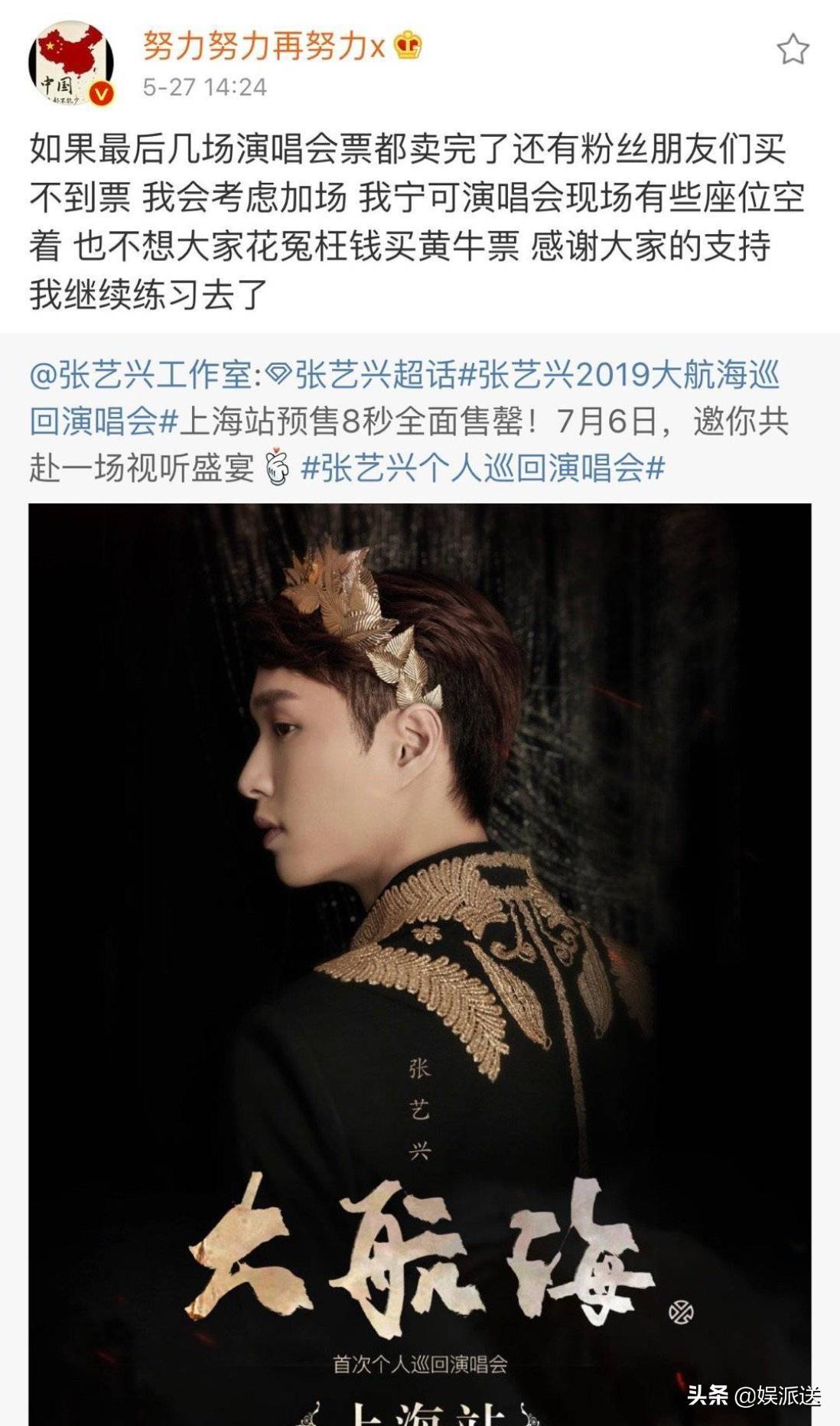 并且张艺兴还在微博发文称“如果最后几场演唱会票都卖完了,还有粉丝买不到票,我会考虑加场,一定不要花冤枉钱买黄牛票,感谢大家支持”如此硬核的操作,相信即便是有黄牛也都会被迫改行吧。