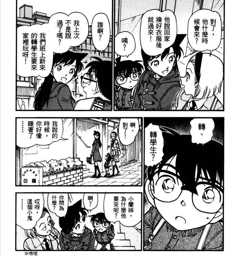 TV446~447(拆分版484~485)《被封印的欧式窗》中,瑛祐对柯南的行为很是在意,在柯南调查案件时跟踪柯南,而柯南也注意到了这一点,没有使用麻醉枪进行推理。