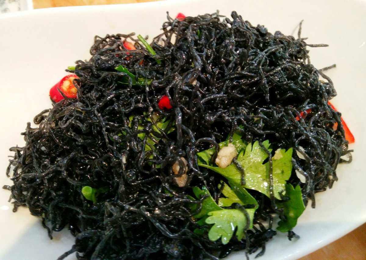银川“黑宝”发菜:属于宁夏银川西夏区的特色美食。发菜是银川的特产,因状似头发,所以又叫头发菜。发菜清脆爽口,鲜嫩味美,嚼起来咯吱作响,是令人食欲大开。
