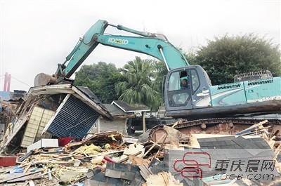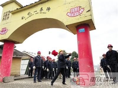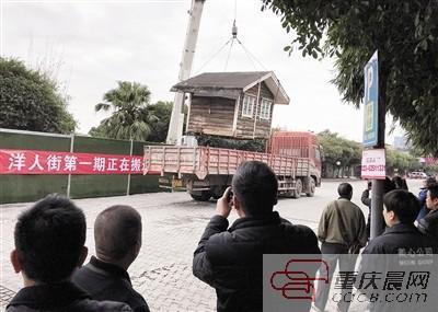 3月1日,洋人街开始搬迁,乱吼一条街牌楼和小木屋拆除,部分将搬往涪陵区蔺市红酒小镇。 上游新闻记者 杨新宇 摄