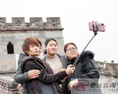 正在自拍的游客。 上游新闻记者 张锦旗 摄