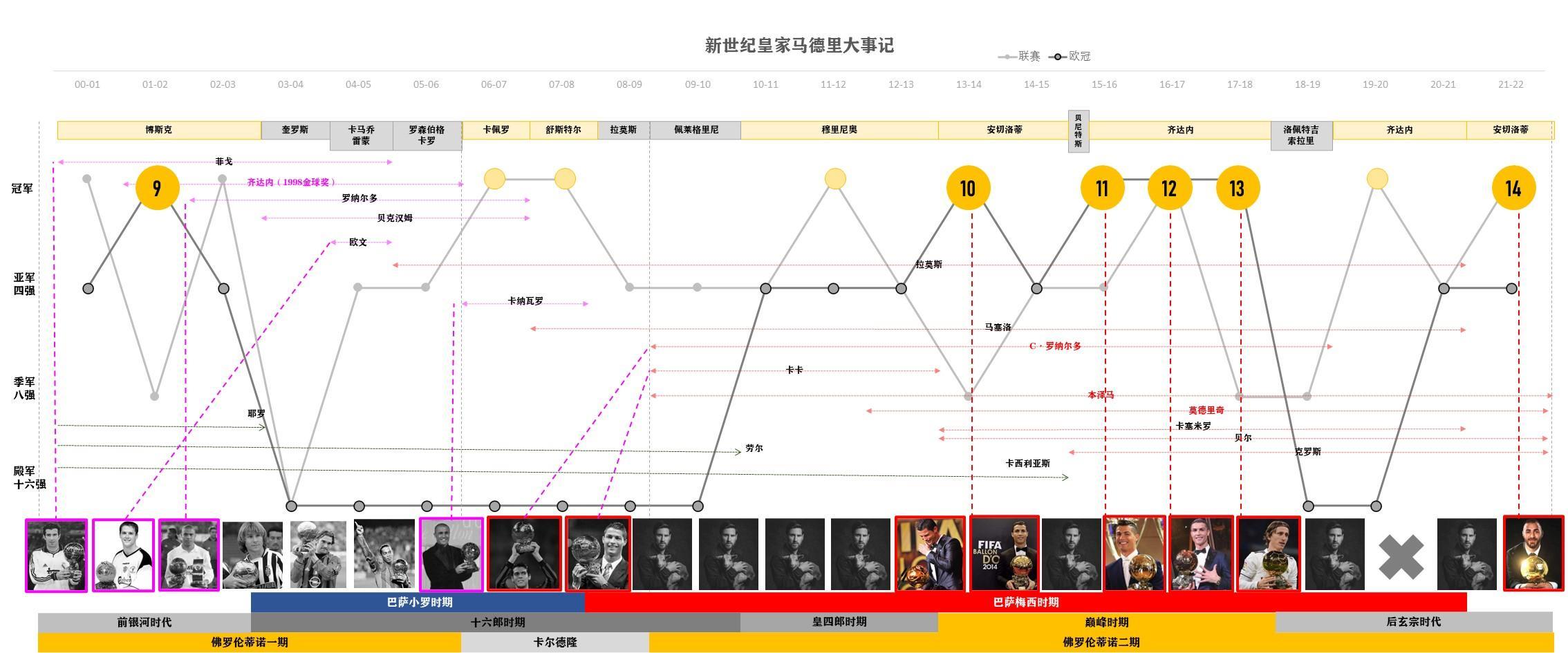 笔者作为梅球王铁粉,曾经的巴萨球迷,对皇马自然谈不上好感。但是,对于任何球迷而言,皇马就像房间里的大象,可以不喜欢,绝对不会忽视。今天闲来无事,花半天搜集了一些资料,制作了下面这张图:21世纪皇家马德里大事记。做完之后,对于皇马这家俱乐部,老佛爷这位俱乐部主席,以及足球这个游戏、这门产业,有了颇多感慨。