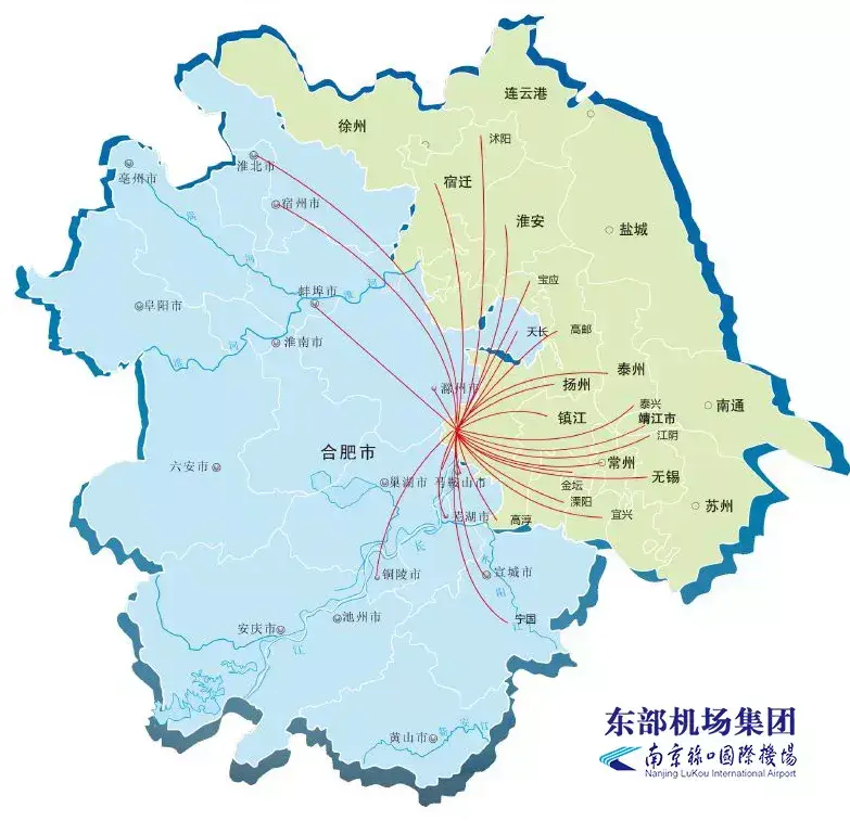 从此禄口机场的辐射范围从马鞍山、滁州、芜湖、镇江等城市,扩大到了枣庄、徐州、宿州、六安/安庆、池州、铜陵等城市,覆盖人口由过去的2000万扩大到了5000万!