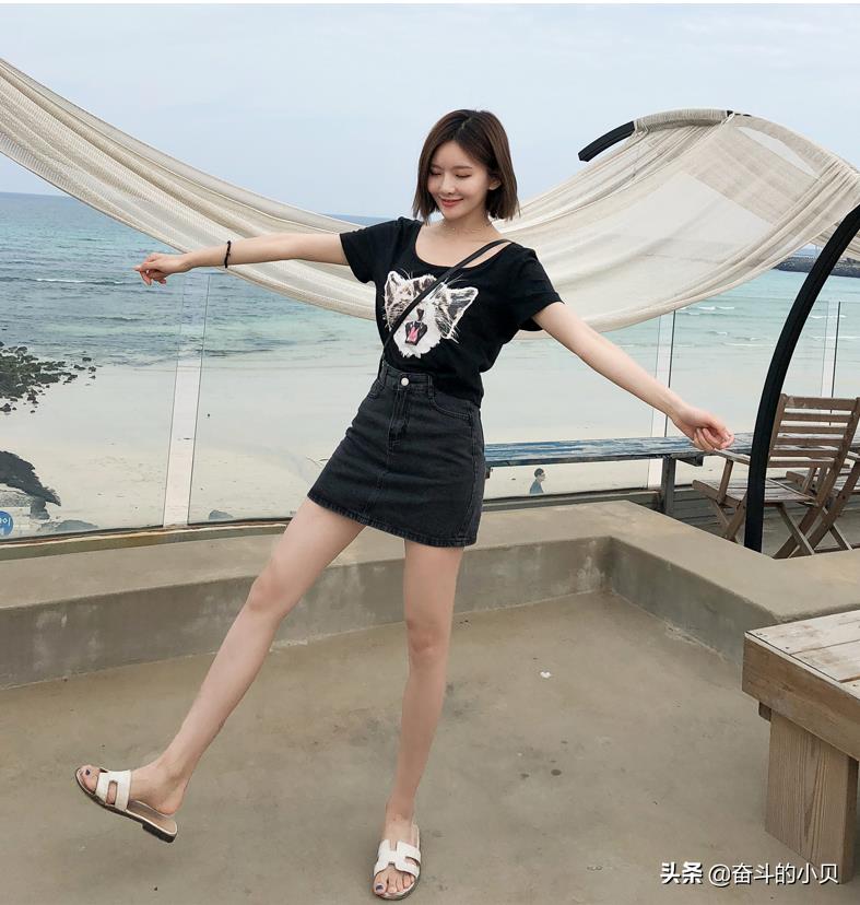 说完了牛仔半身裙,我们也来看下牛仔短裙的是怎么搭配的吧~一提到夏天,大家想到的肯定是热!!那么穿着凉爽肯定是很多小姐姐重点考虑的。在炎热的夏季,牛仔短裙一直都是小姐姐们爱不释手的单品。除了百搭的特点,还有穿起来简单,凉爽等“过人之处”~A字的版型超级显瘦,拉伸腿长,简直是可以完美展示腿部线条。当然,穿上这么潮的短裙再搭配一双时尚的凉拖鞋让你瞬间变成一个时尚达人!!简单方便,舒适凉爽,行走在海滩上,吹着海风,看着海景,悠闲的听着波浪的声音,没错,你就是这条海滩上最靓的仔!!