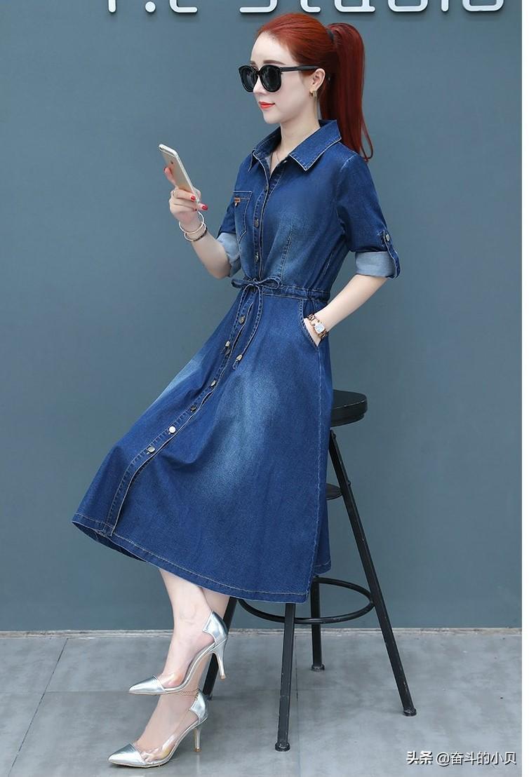 到了秋冬季节,半身裙和短裙可能就不太适合了。我们来看下牛仔连衣裙。修身的版型,完美的展示你的身材。俏皮又时尚的小翻领设计,凸显脖型,修饰女性优美的颈部,减龄又时尚。腰部松紧细带的设计,让你收腰有型,牛仔面料的连衣裙,穿上身后休闲又显气质,搭配一双女人最爱的高跟鞋,简直就是完美!搭配浅色系的高跟鞋,更好看!