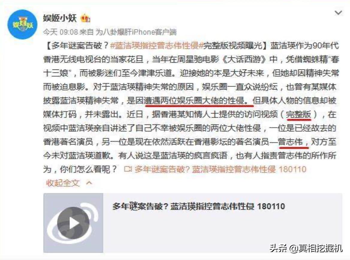 坊间传闻,造成蓝洁瑛变得如此不修边幅,精神看似失常其实还和她曾被圈中大佬性侵的经历有关。