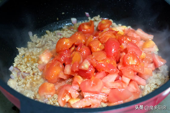 番茄肉酱面在西餐厅里常见,每家为了做得风味独特,可能都会有各自不同的调味料,有些调味料在中餐里不常见,其实也是可以省略的。通常情况下,我家的番茄肉酱就用最基础的三种原料来制作,一起来看看吧!