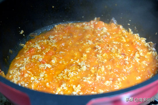 10、番茄肉酱就做好了,用这个酱拌面条、拌饭,或者做披萨都非常不错。
