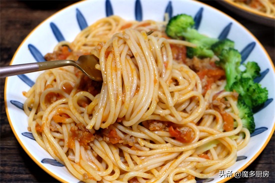 13、每一根面条都裹着浓郁的番茄酱汁,味道好极了。