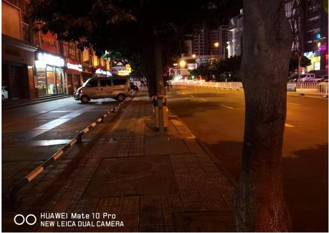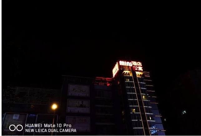 夜间拍摄高处,楼顶“酒店公寓”的字样非常的清晰,而且不散光,这也是2000万像素(黑白)+1200万像素(彩色)的摄像头的功劳,其他的手机还没达到这个境界,也可放映出徕卡的顶级水准。