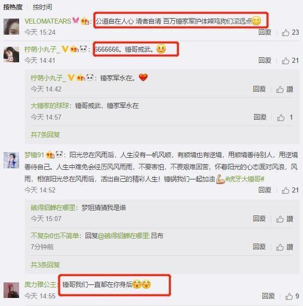 并且观看过大锤哥直播的观众都知道大锤哥是一个怎样的人,所以非常相信大锤哥的为人,在大锤哥的微博留下了自己对大锤哥的支持.