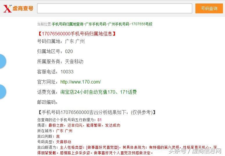 给大家介绍一个专业查询170和171号码的网站。搜索出来的结果