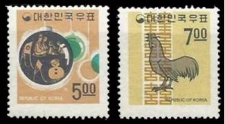 最早的生肖鸡邮票小型张 韩国1968年发行