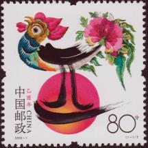 第三轮生肖鸡邮票 2005年发行的《乙酉年》特种邮票,全套共1枚。
