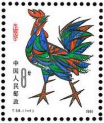 第一轮生肖鸡邮票 1981年发行的《辛酉年》特种邮票,全套共1枚