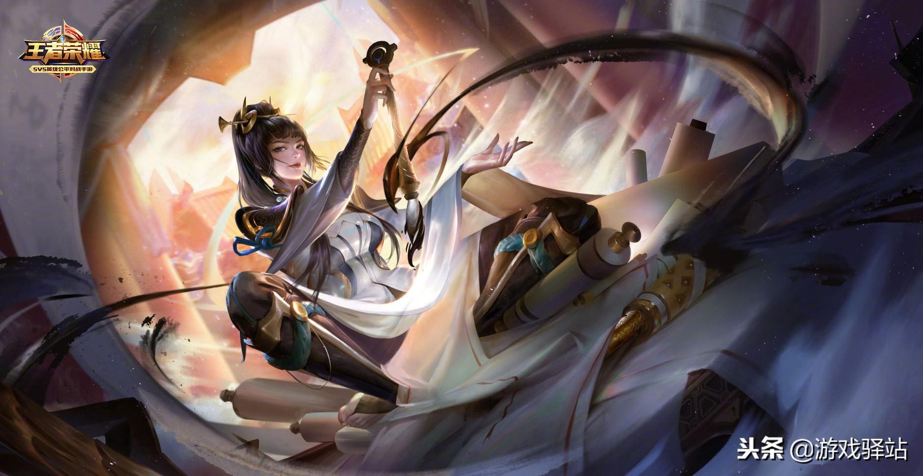 可以看到新英雄上官婉儿席地而坐,手持金色毛笔和白色卷轴似要下笔记录,服饰以黑白色为主色调,采用了类似古代女侠风格的造型,鉴于真实历史中的上官婉儿又被称为上官昭容,与女帝武则天有交集,因此可以预见王者世界观中的婉儿将被纳入河洛阵营,值得一提的是这位女英雄的职业定位为法师/战士,具备远程POKE和近身打伤害的能力!