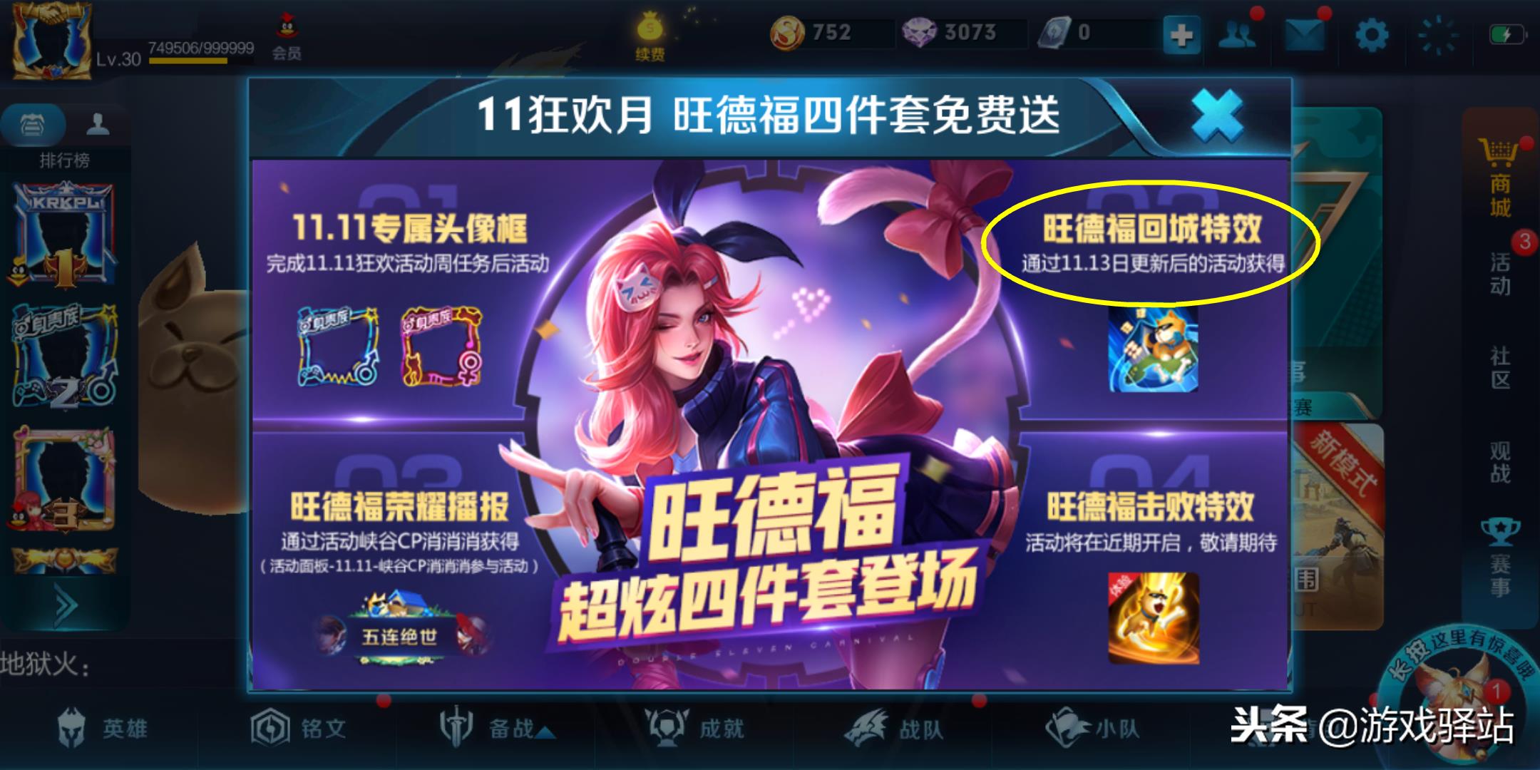 了解完新英雄原画,我们再来看看明日更新后开启的福利和未来新增的头像框,继单身贵族头像框和专属播报上线后,官方将在明天正式开放获取旺德福回城特效,预计获取方式将和头像框一致,同时击败特效7日体验卡的获取活动也将在更新后开启,有需求的玩家记得留意官方公告哦!