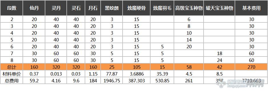 这里要提醒大家,破天首饰做到8段已经非常强大,8段以后费用会比较贵
