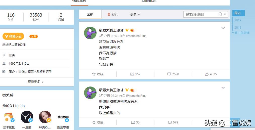 呵呵哒,以下放出一张早前王德才微博的截图,如今微博以清的差不多了。