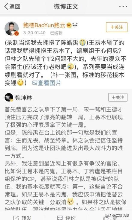 原来是在《最强大脑》最新的一期节目中,王易木被人暗指涉嫌作弊。在节目中,鲍云率领的“云之队”,魏坤琳率领的“林之队”和王峰率领的“山之队”争夺冠军,最终胜利队将作为代表参加国际比赛。在“云之队”和“林之队”的比拼中,“林之队”最终获得胜利。赛后“云之队”的队长鲍云在微博上发文质疑节目组“内定”王易木的胜出。