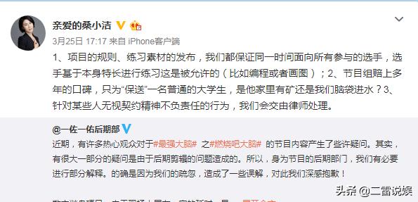 对于这些争议,该节目的制作人出来解释这是后期剪辑上的失误问题,并没有什么黑幕。