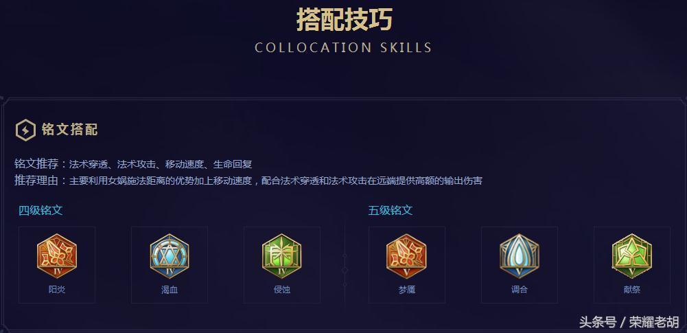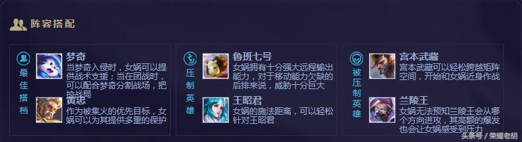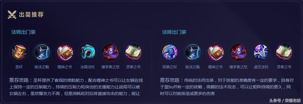 还有官方给出的关于女娲的玩法。铭文搭配、出装等。