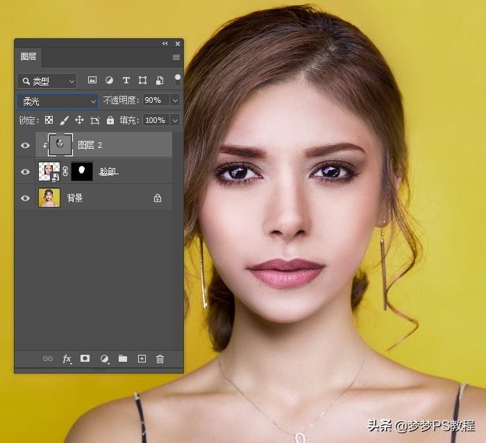 4.按着alt键添加蒙版,再使用白色的画笔工在蒙版当中突出女子的脸部。