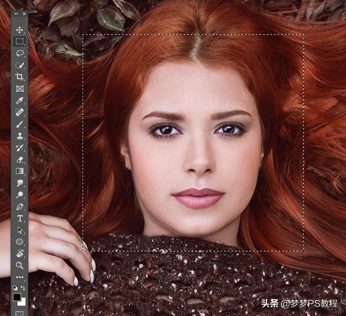 1.这两张素材都拉到到ps里面,然后先选择素材2,用选框工具选中人物脸部。